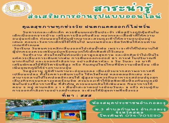 บรรณารักษ์ ห้องสมุดประชาชนอำเภอละงู จัดกิจกรรมส่งเสริมการอ่านภายในห้องสมุดประชาชนอำเภอละงู
