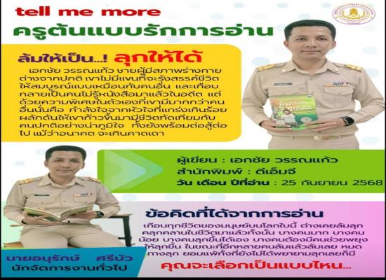สกร.ระดับอำเภอท่าแพ ดำเนินการจัดกิจกรรม ส่งเสริมการวิเคราะห์ และการอ่านอย่างเป็นกระบวนการ โดยผู้บริหารและครูเป็นต้นแบบ ภายใต้กิจกรรมกิจกรรม \'\'Tell me more\" ประจำเดือนกันยายน 2568