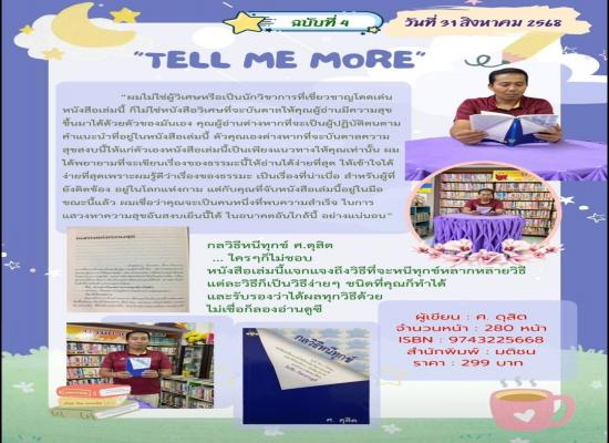 สกร.ระดับอำเภอท่าแพ ดำเนินการจัดกิจกรรม ส่งเสริมการวิเคราะห์ และการอ่านอย่างเป็นกระบวนการ โดยผู้บริหารและครูเป็นต้นแบบ ภายใต้กิจกรรมกิจกรรม \'\'Tell me more\"