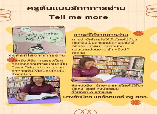 ศกร.ระดับตำบลท่าเรือ ดำเนินการจัดกิจกรรม ส่งเสริมการวิเคราะห์ และการอ่านอย่างเป็นกระบวนการ โดยผู้บริหารและครูเป็นต้นแบบ ภายใต้กิจกรรมกิจกรรม \\\'\\\'Tell me more\\\"