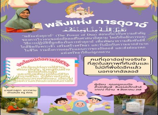 วันที่ 22 กันยายน 2568 นายอาดำ ลิงาลาห์ ผู้อำนวยการสถานศึกษาศูนย์ส่งเสริมการเรียนรู้ระดับอำเภอท่าแพ ดำเนินการจัดกิจกรรม ส่งเสริมการวิเคราะห์ และการอ่านอย่างเป็นกระบวนการ โดยผู้บริหารและครูเป็นต้นแบบ ภายใต้กิจกรรม \\\'\\\'Tell me more\\\"