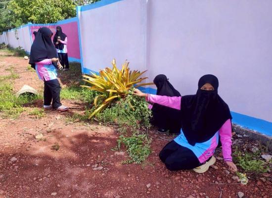 ศูนย์ส่งเสริมการเรียนรู้ระดับอำเภอควนกาหลงนำนักศึกษาร่วมพัฒนาบริเวณในสถาบันศึกษาปอเนาะ