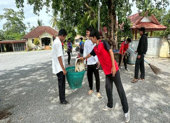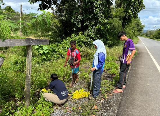 ศูนย์ส่งเสริมการเรียนรู้ระดับอำเภอควนกาหลงนำนักศึกษาร่วมพัฒนาบริเวณในสถาบันศึกษาปอเนาะ