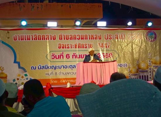 ศูนย์ส่งเสริมการเรียนรู้ระดับอำเภอควนกาหลงร่วมเป็นเกียรติในพิธีเปิด งานเมาลิดกลางตำบลควนกาหลง