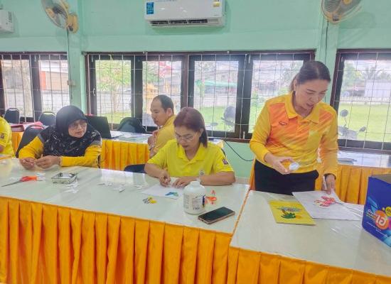 ศกร.ระดับตำบลควนขัน ร่วมประดิษฐ์ผีเสื้อจากผ้าไทยประจำถิ่นของจังหวัด เพื่อสนับสนุนการออกร้านนาวากาชาดของสมาคมแม่บ้านมหาดไทย ประจำปี 2568