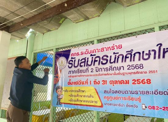 ศกร.ระดับตำบลเกาะสาหร่าย ติดป้ายประชาสัมพันธ์รับสมัครนักศึกษาใหม่ ภาคเรียนที่ 2 ปีการศึกษา 2568