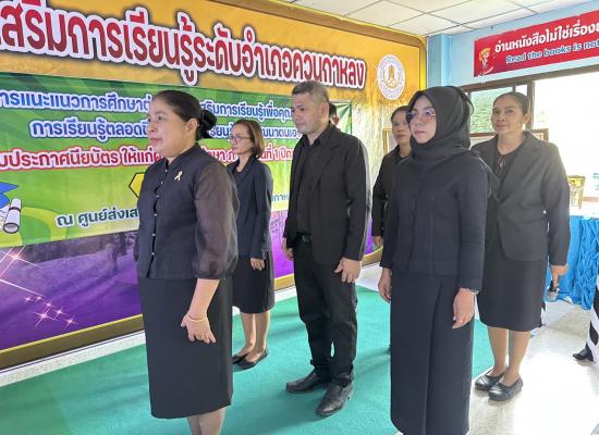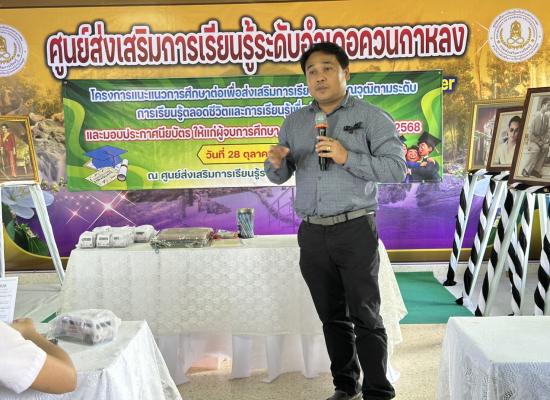 กร.ระดับอำเภอควนกาหลง จัดโครงการแนะแนวการศึกษาต่อเพื่อส่งเสริมการเรียนรู้เพื่อคุณวุฒิตามระดับ,การเรียนรู้ตลอดชีวิตและการเรียนรู้เพื่อพัฒนาตนเองและมอบประกาศนียบัตร ให้แก่ผู้จบการศึกษาภาคเรียนที่ ๑ ปีการศึกษา ๒๕๖๘