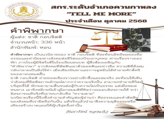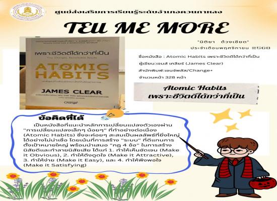 ศูนย์ส่งเสริมการเรียนรู้ระดับอำเภอควนกาหลง ดำเนินการจัดกิจกรรม ส่งเสริมการวิเคราะห์ และการอ่านอย่างเป็นกระบวนการ โดยผู้บริหารและครูเป็นต้นแบบ ภายใต้กิจกรรมกิจกรรม \\\'Tell me more\\\"  ประจำเดือน ตุลาคม 2568