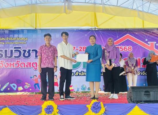 ศกร.ระดับตำบลพิมาน นำนักศึกษาเข้าร่วมแข่งขันการประกวดสื่อสร้างสรรค์เพื่อการสื่อสาร (สื่อทำมือ) ภาษาอังกฤษ ในงานมหกรรมวิชาการ สกร.ประจำจังหวัดสตูล Open house ครั้งที่ 3 ปี พ.ศ.2568
