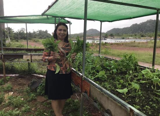 ศกร.ระดับตำบลควนขัน เก็บผลผลิตโครงการเศรษฐกิจพอเพียง ภายในแปลงเกษตรของ ศกร.ระดับตำบล