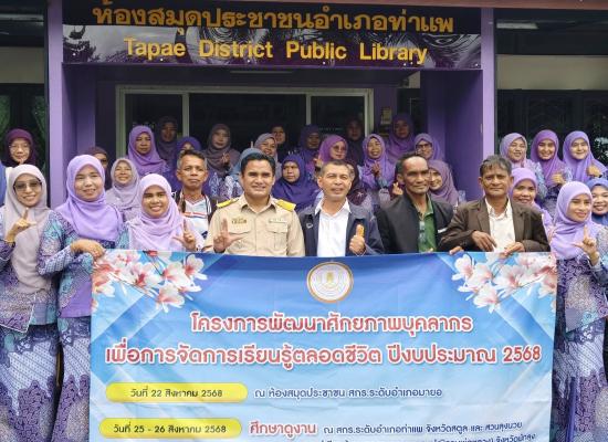 วันที่ 20 สิงหาคม 2568 นายอาดำ ลิงาลาห์ ผู้อำนวยการสถานศึกษาศูนย์ส่งเสริมการเรียนรู้ระดับอำเภอท่าแพ มอบหมายให้ บุคลากร สกร.ระดับอำเภอท่าแพ จัดกิจกรรมอบรมการดูแลผู้สูงอายุ หลักสูตร70ชั่วโมง ให้แก่ อสม.ในพื้นที่ อำเภอที่แพ ระหว่าง สกร.ระดับอำเภอท่าแ |