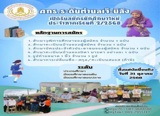 ศกร.ระดับตำบลเจ๊ะบิลัง รับสมัครนักศึกษาและประชาสัมพันธ์รับสมัครนักศึกษา ภาคเรียนที่ 2 ปีการศึกษา 2568
