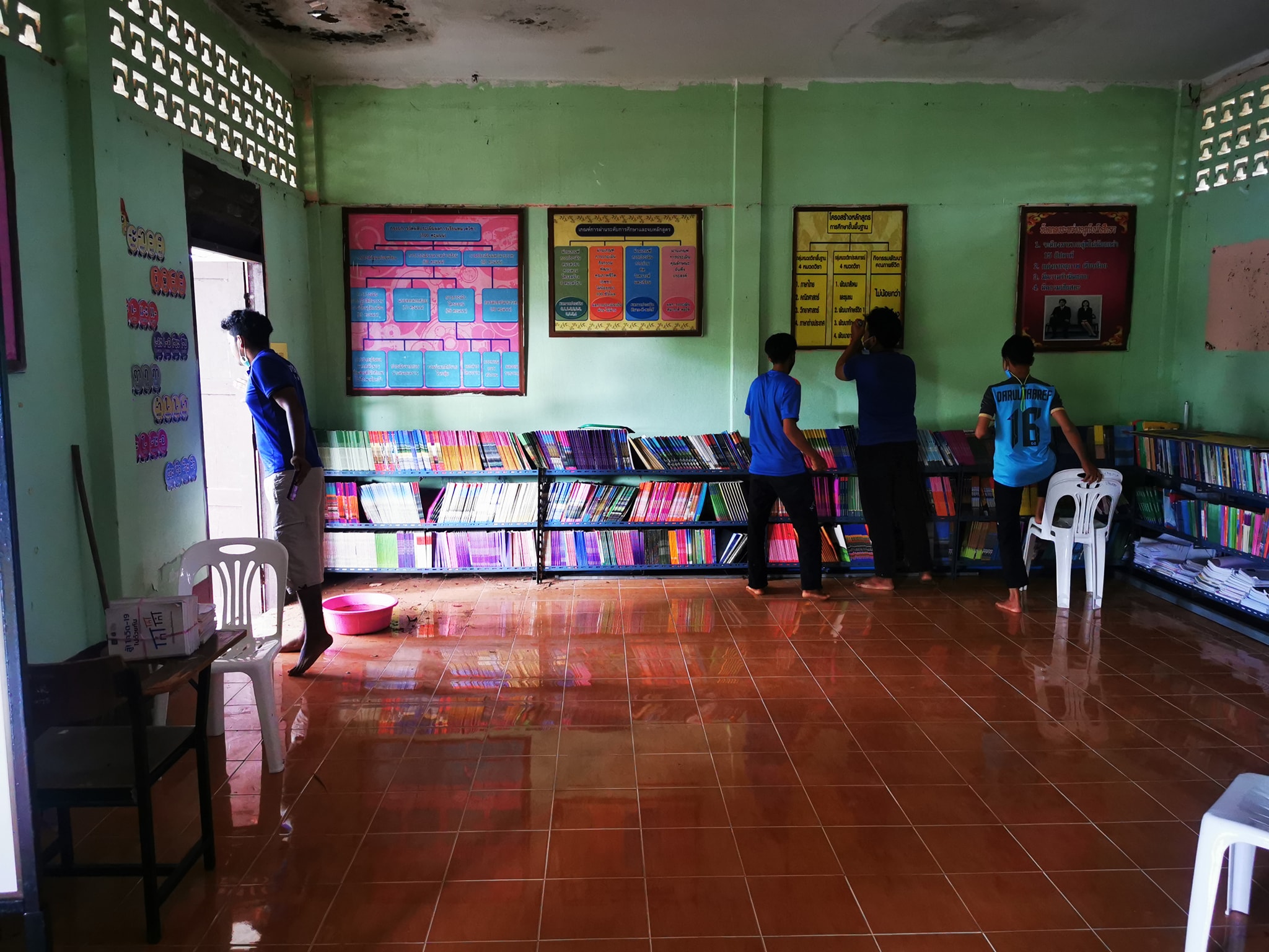 ทำความสะอาดและพัฒนาบริเวณภายในอาคารเพื่อทำการทาสี กศน.ตำบลบ้านควนเพื่อความสะอาด สวยงาม