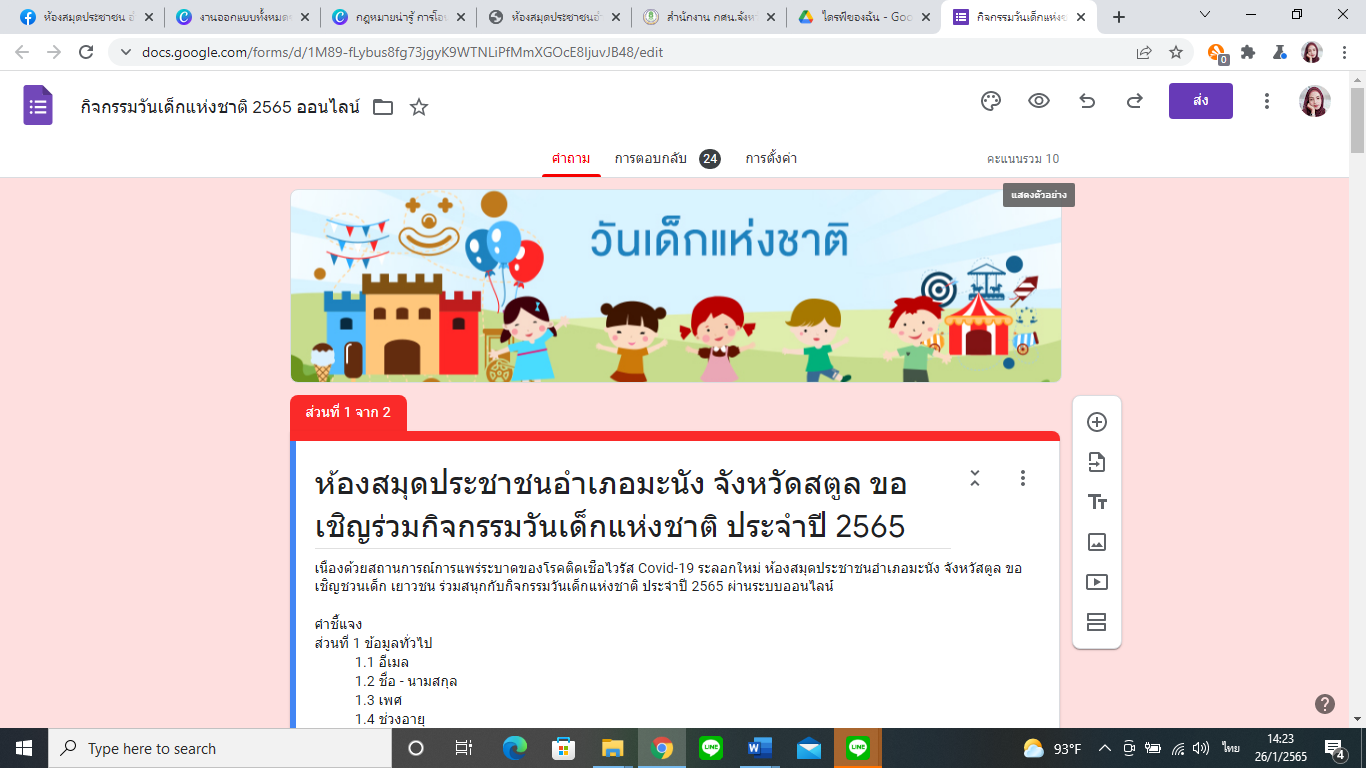นางสาวจตุพร ทหารไทย ครูชำนาญการ รักษาการในตำแหน่งผู้อำนวยการศูนย์ กศน.อำเภอมะนัง จังหวัดสตูล พร้อมด้วยนางสาวนริสรา พงค์หลง บรรณารักษ์อัตราจ้าง มอบรับรางวัล กิจกรรมส่งเสริมการอ่านออนไลน์ เนื่องในวันเด็กแห่งชาติ ประจำปี พ.ศ. 2565 ผ่านสื่อออนไลน์ Google Form ระหว่างวันที่ 8 -15 มกราคม 2565 เนื่องจากอยู่ในช่วงการรักษามาตรการป้องกันการแพร่ระบาดของเชื้อไวรัส Covid -19 เพื่อส่งเสริมให้เด็กและเยาวชน มีนิสัยรักการอ่านและสามารถใช้เวลาว่างให้เกิดประโยชน์ และเพื่อสร้างขวัญกำลังใจให้กับเด็กและเยาวชนต่อไป