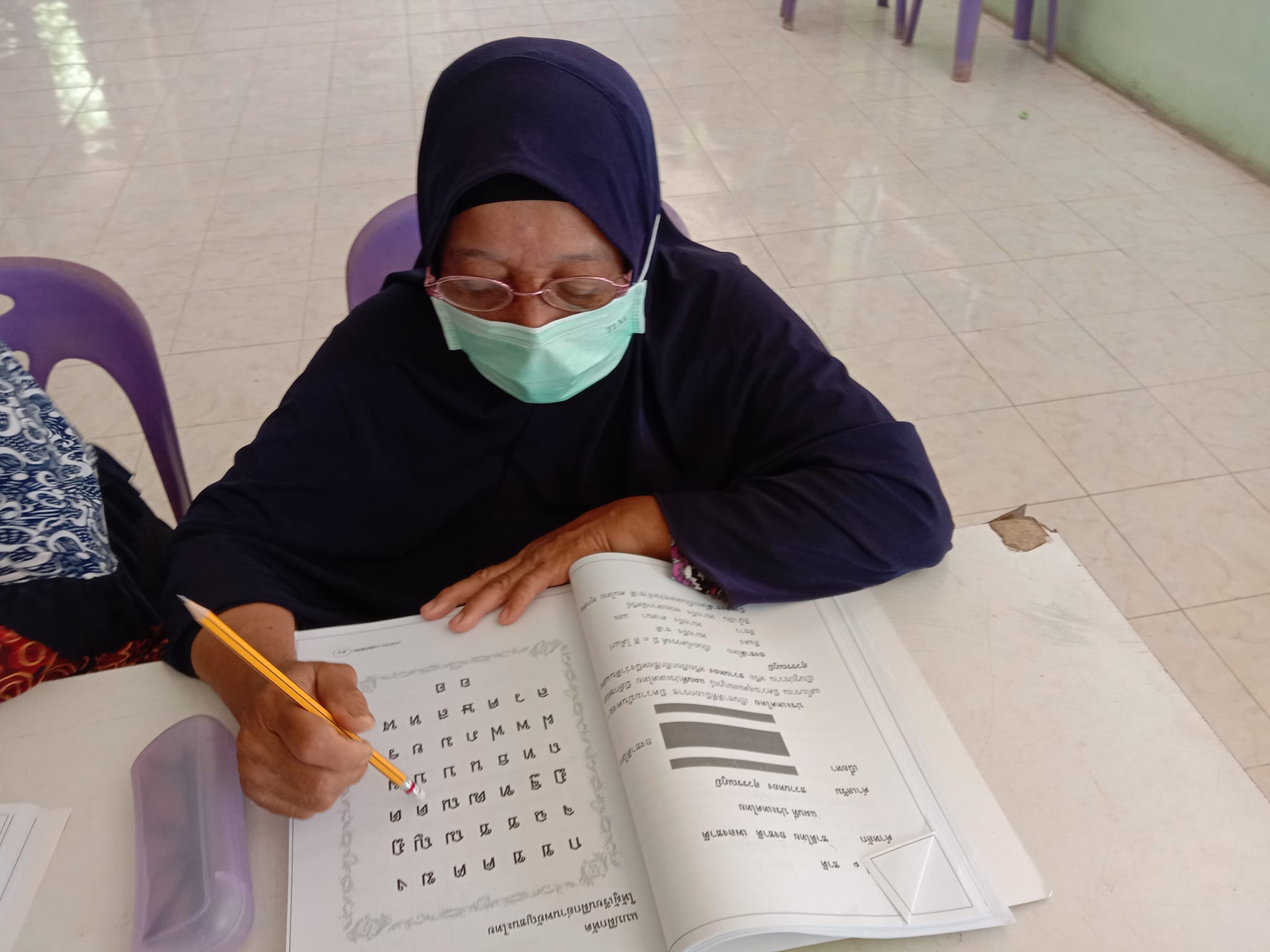 นางสาววิภานันท์ พุทธนุกูล ผู้อำนวยการศูนย์ กศน.อำเภอเมืองสตูล มอบหมายให้ นางสาวโสภา หนูสิงห์ ครูอาสาฯ จัดกิจกรรมการเรียนการสอนผู้ไม่รู้หนังสือไทยให้กับผู้ไม่รู้หนังสือในตำบลฉลุงที่ต้องการเรียนรู้หนังสือไทย ภายใต้การควบคุมการแพร่ระบาดเชื้อไวรัสโคโรนา 2019 ณ อาคารอเนกประสงค์ หมู่ที่ 1 ตำบลฉลุง อำเภอเมือง จังหวัดสตูล