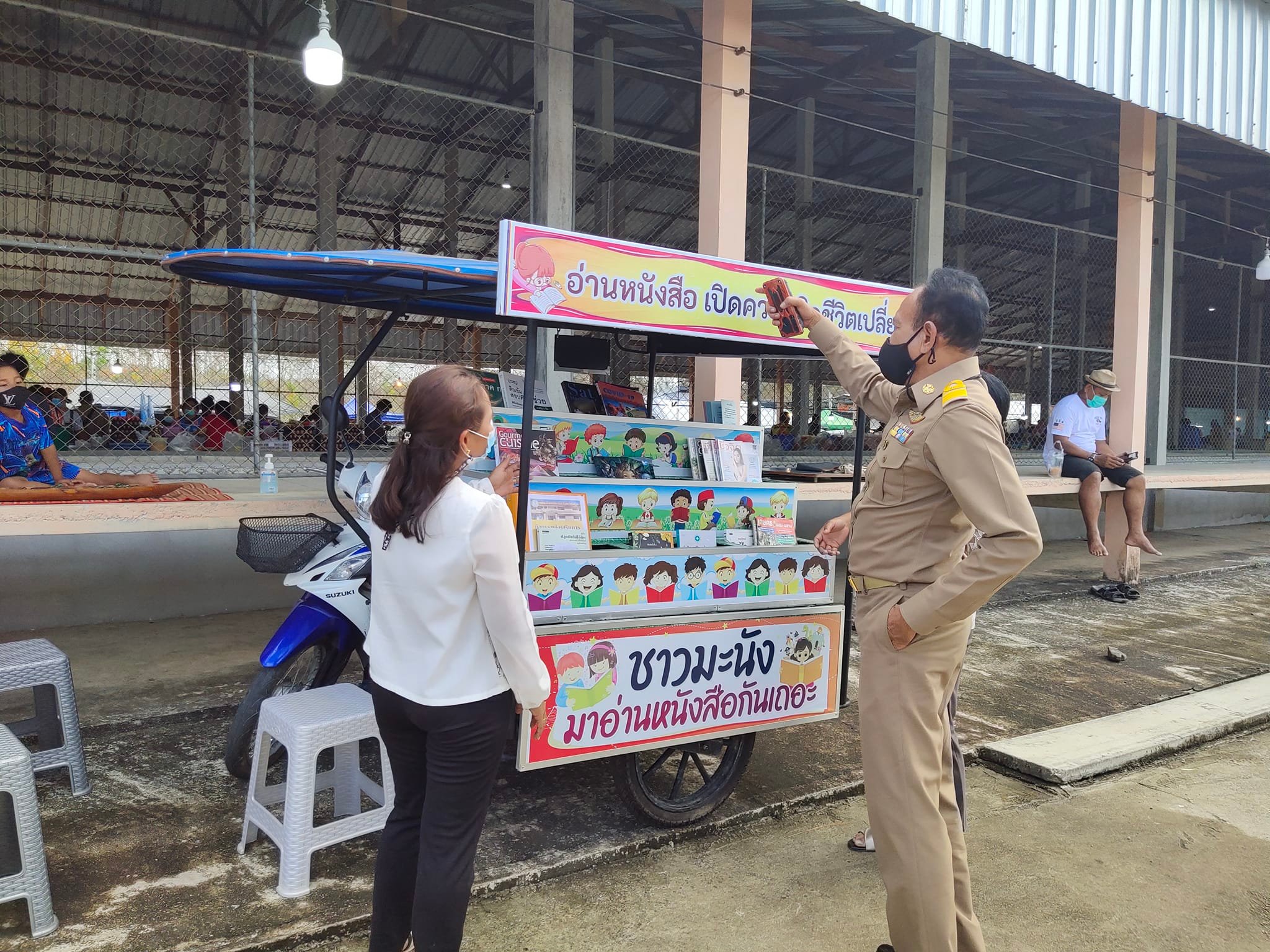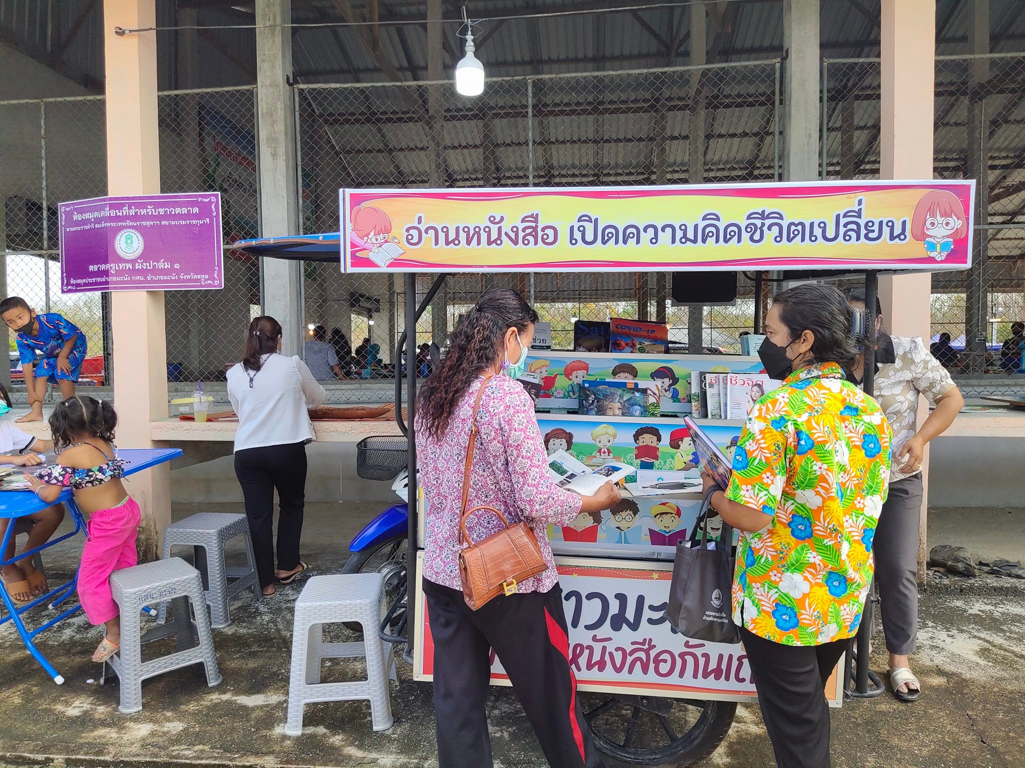 ห้องสมุดประชาชนอำเภอมะนัง ชวนอ่าน อ่านทุกที่ ทุกเวลา กิจกรรมส่งเสริมการอ่านห้องสมุดเคลื่อนที่สำหรับชาวตลาด