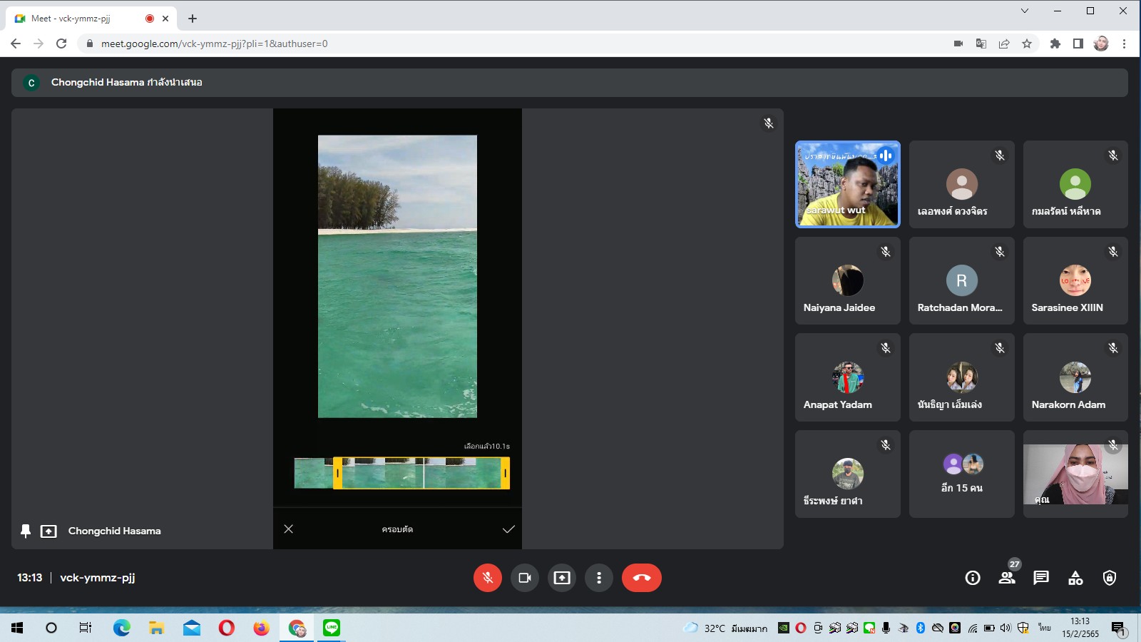 วันที่ 7-20 กุมภาพันธ์ 2565 นางหัสนีย์ หัสมา ตำแหน่ง ครู ศรช.บ้านปากละงู จัดกิจกรรมพัฒนาคุณภาพผู้เรียน โครงการคลิปวีดีโอส่งเสริมการท่องเที่ยวอำเภอละงู ให้กับนักศึกษา ศรช.บ้านปากละงู จำนวน 118 คน โดยผ่านระบบอิเล็กทรอนิกส์ (Google Meet) ณ ศรช.บ้านปากละงู