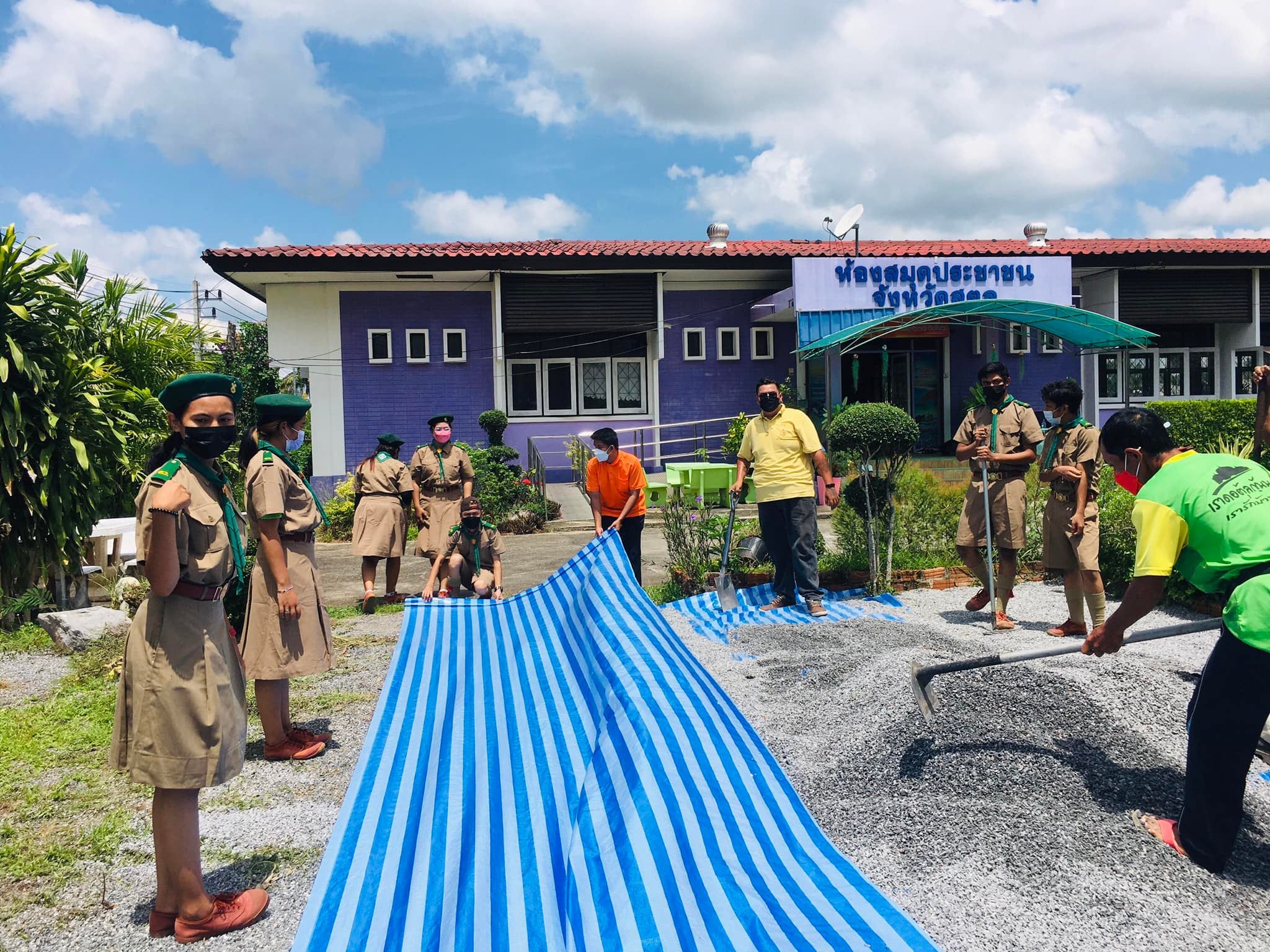 นางสาวมีนา เหล่ทองคำ ครู กศน.ตำบลเกตรี และนางยุเราะ สัญญา ครู อาสาสมัคร กศน.ตำบลเกตรี นำนักศึกษาลูกเสือจิตอาสาพระราชทาน ร่วมกันพัฒนาปรับภูมิทัศน์ ห้องสมุดประชาชน จังหวัดสตูล ณ ห้องสมุดประชาชน จังหวัดสตูล