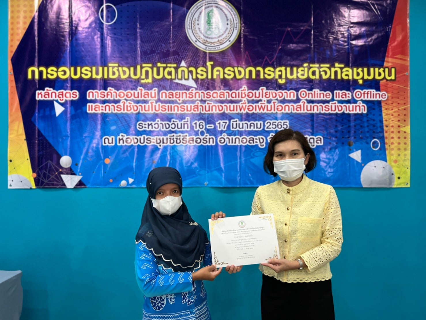 ครู กศน.ตำบลเกตรี เข้าร่วมโครงการอบรมเชิงปฏิบัติการ ศูนย์ดิจิทัลชุมชน หลักสูตรการค้าออนไลน์กลยุทธ์การตลาดเชื่อมโยงจากออนไลน์และออฟไลน์ และการใช้งานโปรแกรมสำนักงานเพื่อเพิ่มโอกาสในการมีงานทำ ณ Seesea Resort อำเภอละงู จังหวัดสตูล ทั้งในระบบ Offline และระบบ Online ในระหว่างวันที่ 16 - 17 มีนาคม 2565 ทั้งนี้การอบรมได้ดำเนินการตามมาตราการป้องกันการแพร่ระบาดของโควิด-19 อย่างเคร่งครัด
