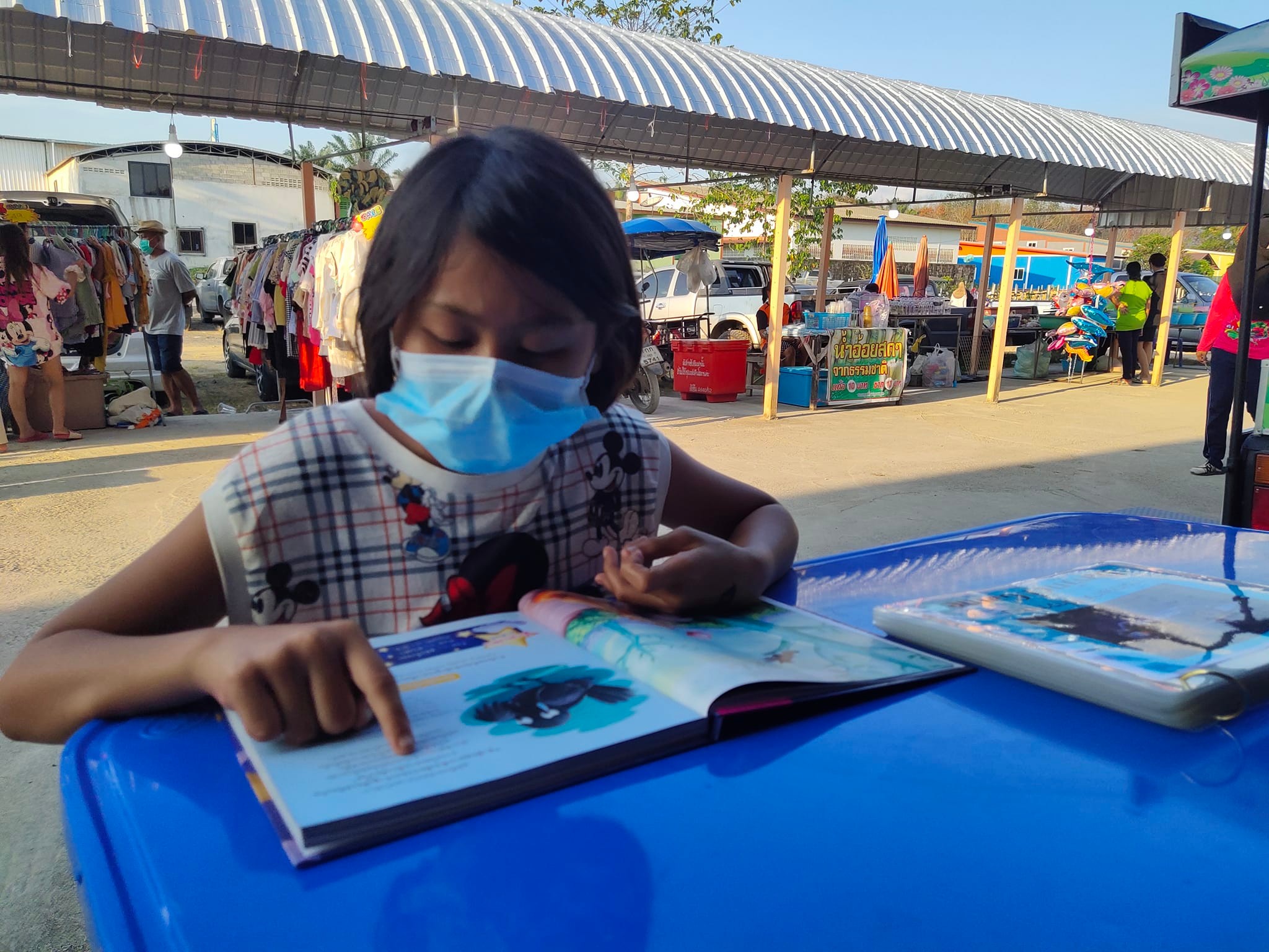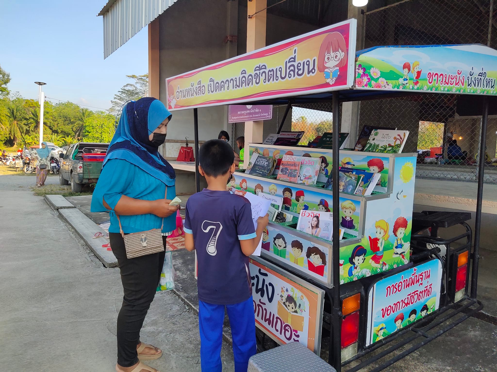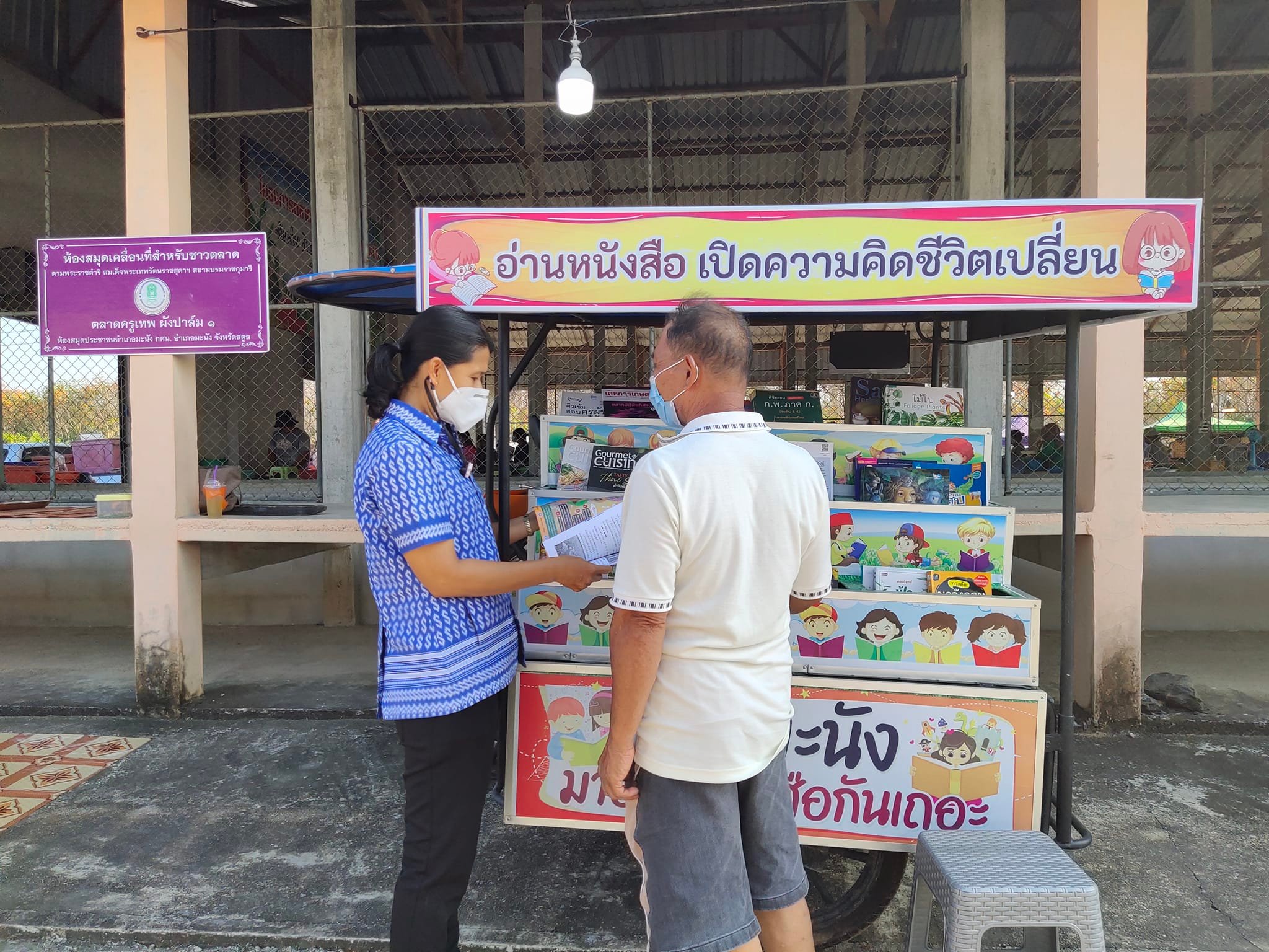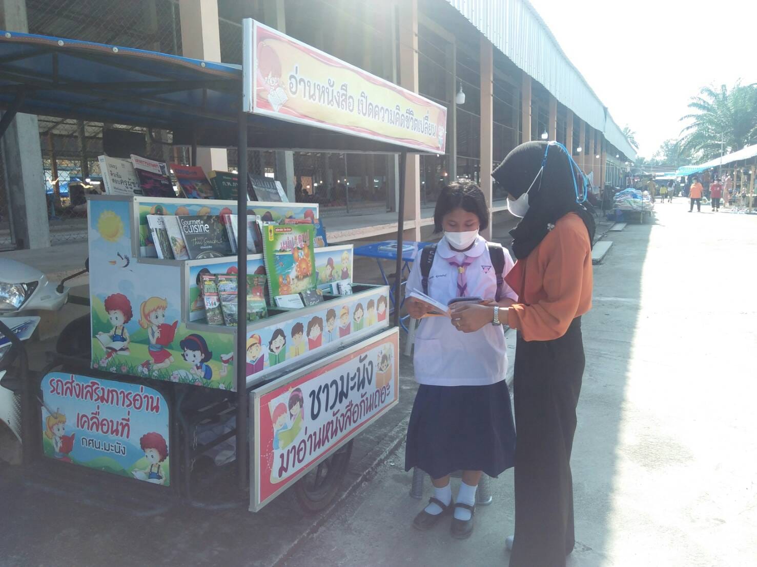 ห้องสมุดประชาชนอำเภอมะนัง ชวนอ่าน อ่านทุกที่ ทุกเวลา กิจกรรมส่งเสริมการอ่านห้องสมุดเคลื่อนที่สำหรับชาวตลาด