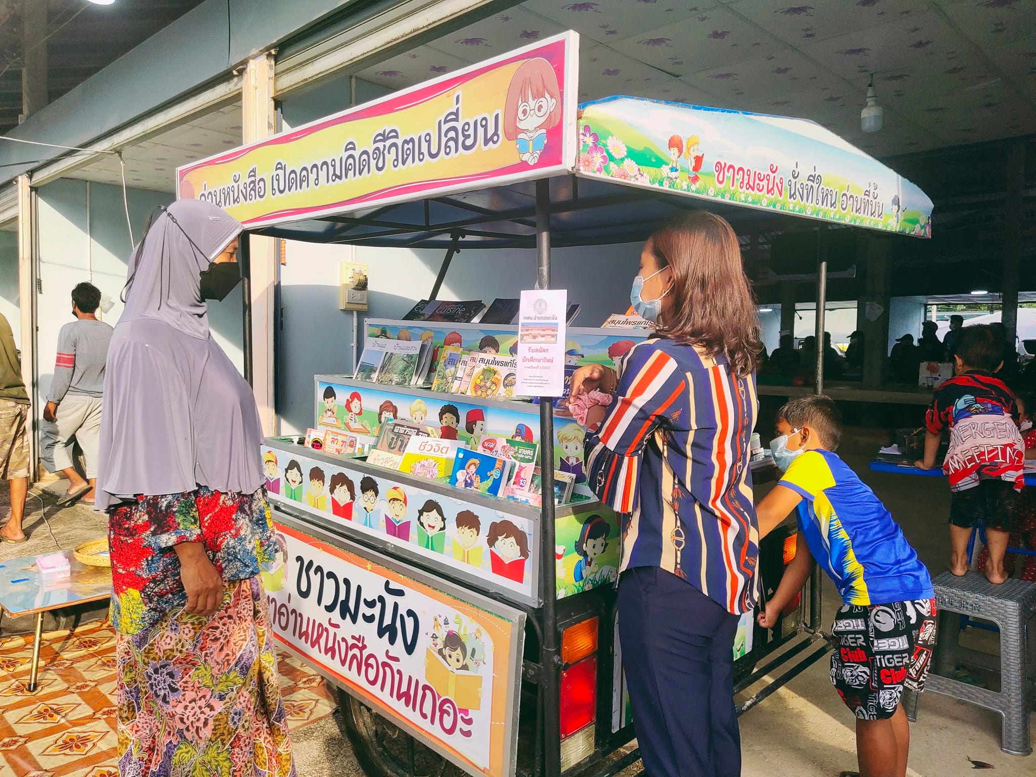 นางสาวจตุพร ทหารไทย ครูชำนาญการ รักษาการในตำแหน่ง ผู้อำนวยการศูนย์ กศน.อำเภอมะนัง จังหวัดสตูล มอบหมายให้นางสาวนริสรา พงค์หลง บรรณารักษ์ พร้อมด้วยนางสาวดวงกมล ประทุมมณี ครู กศน.ตำบล นางนฤมล ช่วยดำ ครูอาสาสมัคร #จัดกิจกรรมส่งเสริมการอ่านรถมินิโมบายห้องสมุดประชาชนเคลื่อนที่สำหรับวางตลาดซึ่งมีกิจกรรมดังนี้
