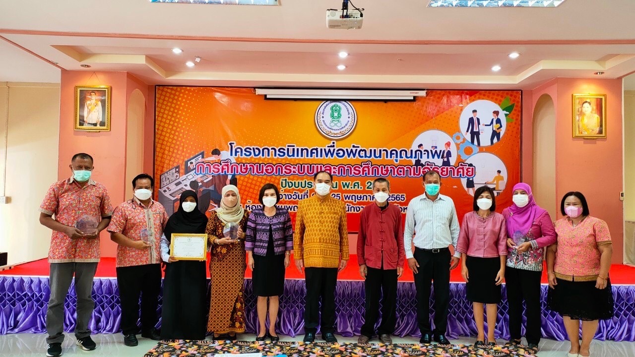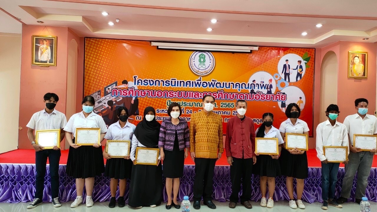 นายมรกต กันหนองผือ ผอ.กศน. อำเภอละงู มอบหมายให้ นางภัทรพร อุโหยบ ครูอาสาสมัคร ตำบลกำแพง พร้อมด้วยนักศึกษาเข้ารับโลรางวัลและเกียรติบัตร
