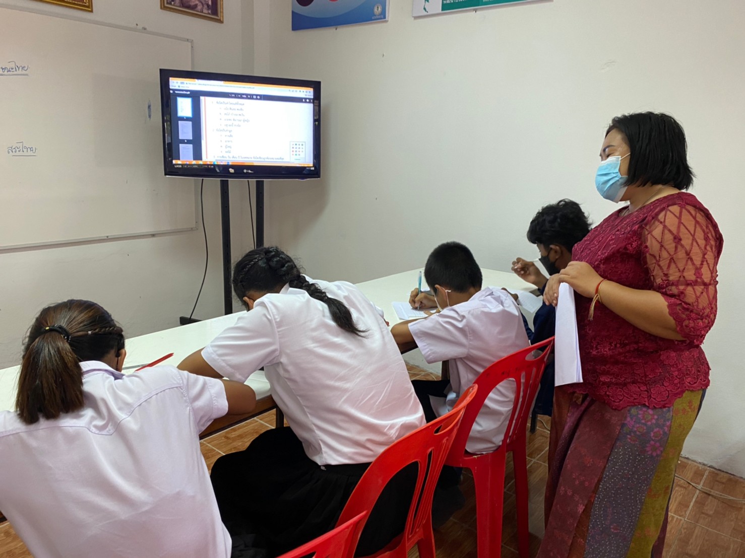 วันที่ 26 พฤษภาคม 2565 นางสาวธัญลักษณ์ แสงวิสุทธิ์ ครูอาสาสมัครฯ ดำเนินการจัดกิจกรรมการเรียนการสอน ระดับมัธยมศึกษาตอนต้น ภาคเรียนที่ 1 ปีการศึกษา 2565 โดยปฏิบัติตามมาตรการควบคุมและป้องกันโควิด-19 อย่างเคร่งครัด ณ กศน.ตำบลน้ำผุด อำเภอละงู จังหวัดสตูล