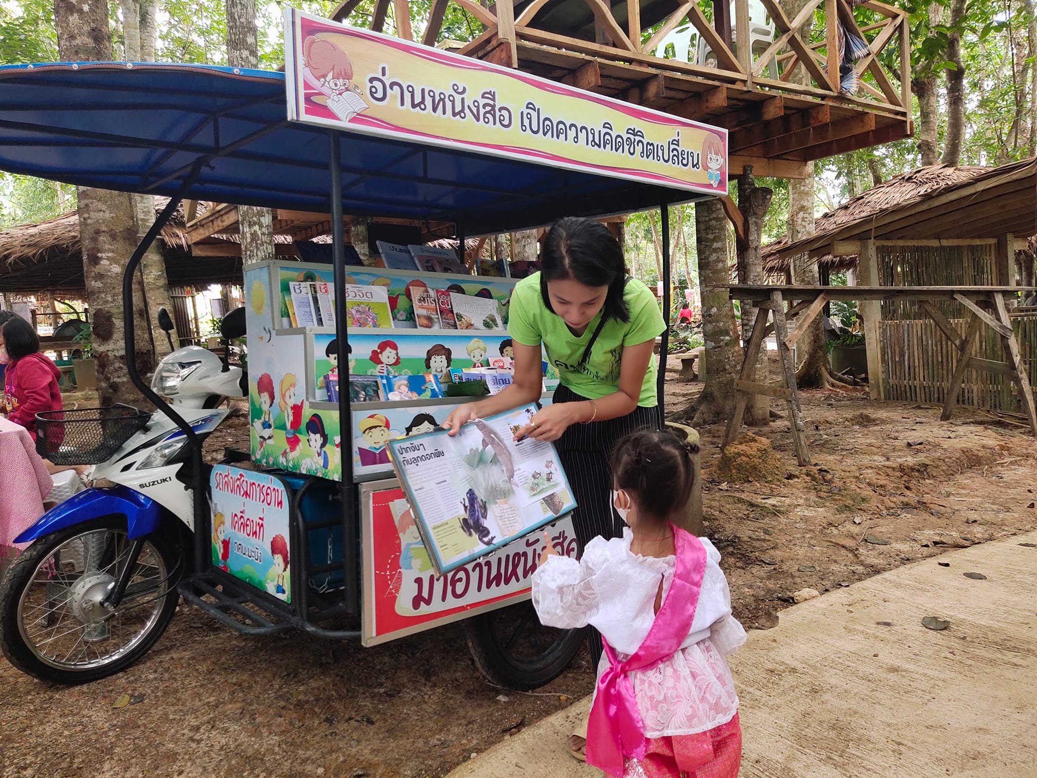 ห้องสมุดประชาชนอำเภอมะนัง จัดกิจกรรมส่งเสริมการอ่านรถมินิโมบายห้องสมุดประชาชนเคลื่อนที่ ตลาดย้อนยุค"หลาดสวนไผ่ วัดผัง 7 "