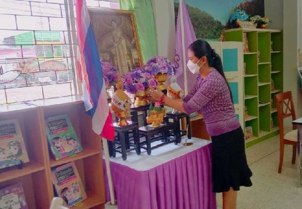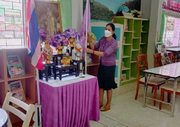 นายอาดำ ลิงาลาห์ ผู้อำนวยการศูนย์ กศน.อำเภอทุ่งหว้า จังหวัดสตูล มอบหมายให้นางสาวพัชรี ยอดราช บรรณารักษ์ จัดตั้งโต๊ะหมู่ประดิษฐานพระฉายาลักษณ์สมเด็จพระนางเจ้าฯ พระบรมราชินี พร้อมเครื่องราชสักการะ ประดับธงชาติคู่กับธงอักษรพระนามาธิปไธย ส.ท. เนื่องในโอกาสวันเฉลิมพระชนมพรรษา สมเด็จพระนางเจ้าสุทิดา พัชรสุธาพิมลลักษณ พระบรมราชินี 3 มิถุนายน #wow3 #GoodActivities # ณ ห้องสมุดประชาชนอำเภอทุ่งหว้า จังหวัดสตูล