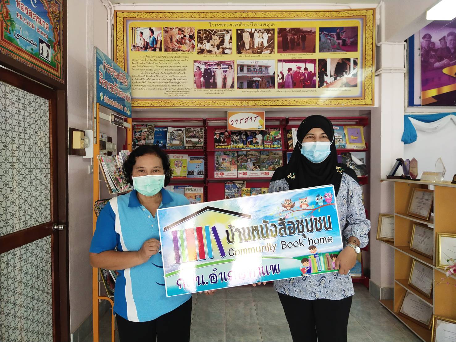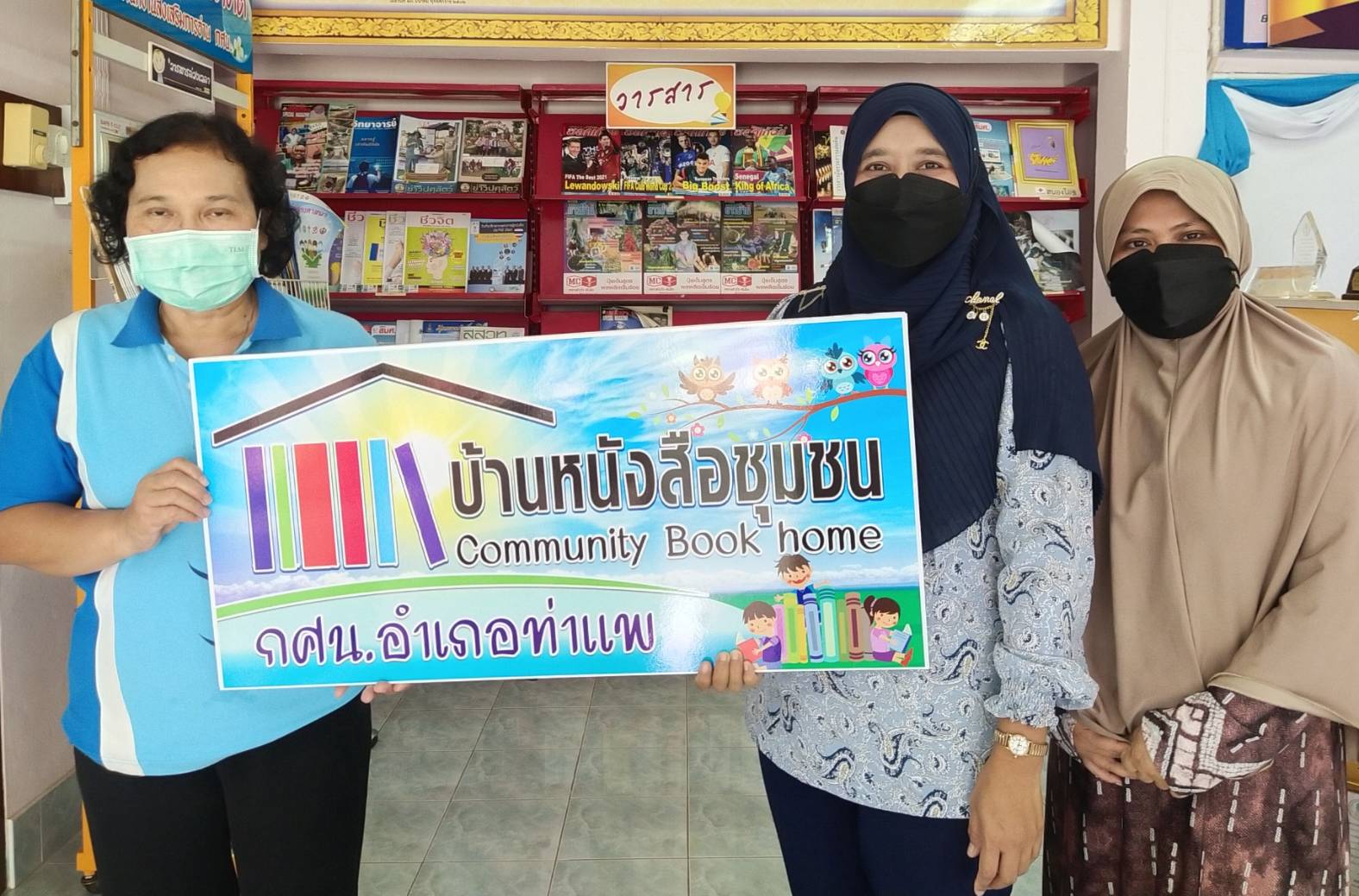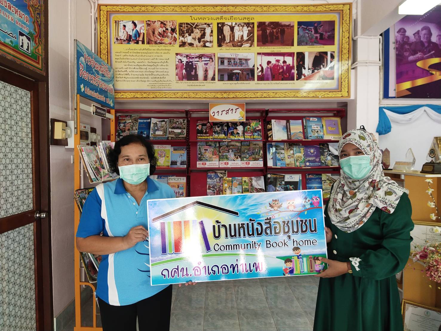 นางสาววชิรา คงพูล บรรณารักษ์ห้องสมุดประชาชนอำเภอท่าแพ มอบหนังสือและป้ายบ้านหนังสือชุมชนให้กับกศน.ตำบลท่าแพ ตำบลท่าเรือ ตำบลแป-ระ และตำบลสาคร เพื่อครูอาสาฯและครูกศน.ทั้ง 4 ตำบล นำไปทำกิจกรรมและส่งเสริมการอ่าน ณ บ้านหนังสือชุมชน