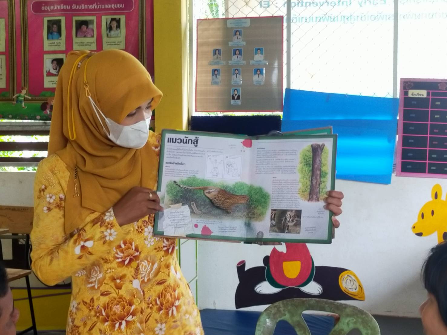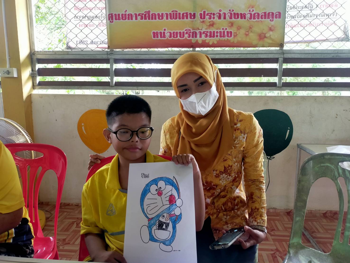 นางสาวจตุพร ทหารไทย ครูชำนาญการ รักษาการในตำแหน่ง ผู้อำนวยการศูนย์ กศน.อำเภอมะนัง จังหวัดสตูล มอบหมายให้นางสาวนริสรา พงค์หลง บรรณารักษ์ พร้อมด้วยนายนภัทร จันทวิลาศ ครู กศน.ตำบลนิคมพัฒนา จัดกิจกรรมส่งเสริมการอ่านห้องสมุดประชาชนเคลื่อนที่ การศึกษาพิเศษ กิจกรรมเล่านิทานหรรษา Big Card ABC (AR Card) นิทานปากกาพูดได้ และแต่งแต้มเพิ่มสีส้น ช่วยเด็กเกิดความสนใจ และมีสมาธิมากขึ้น เด็กพิเศษแต่ละกลุ่มจึงควรมีสื่อส่งเสริมการอ่านที่เหมาะสมแตกต่างกันไปตามความบกพร่อง เพื่อให้เด็กได้ใช้ประสาทสัมผัสด้านอื่น ๆ มาช่วยในการเรียนรู้ด้านการอ่าน ณ ศูนย์การศึกษาพิเศษ ประจำจังหวัดสตูล หน่วยบริการมะนัง ผัง 19 ตำบลนิคมพัฒนา อำเภอมะนัง จังหวัดสตูล